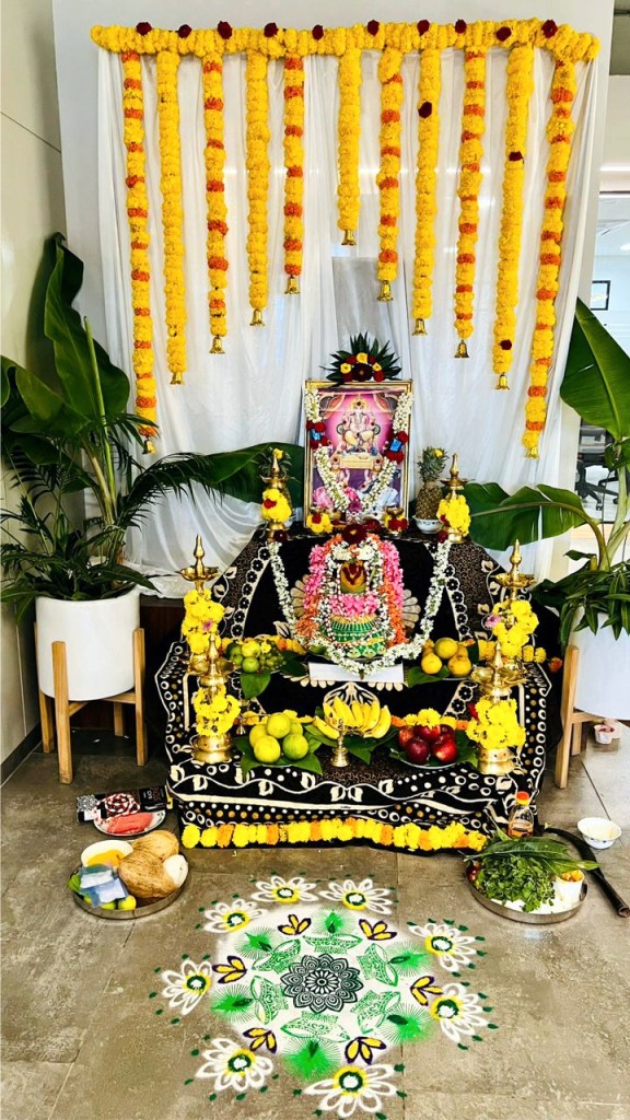 Members of the staff adorned traditional attire, decorated the office, performed pooja ceremony and distributed sweets to each other.